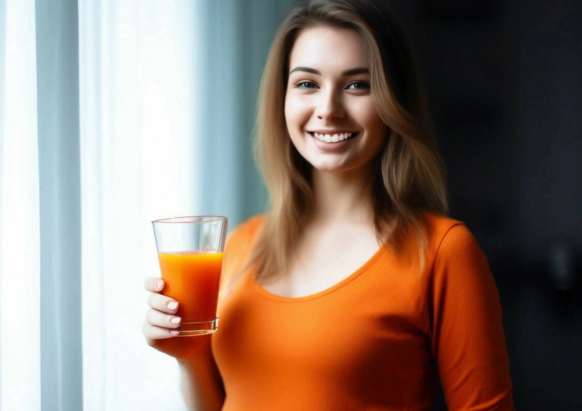 Морковный сок содержит бета-каротин, который придает коже здоровый цвет и улучшает ее состояние.