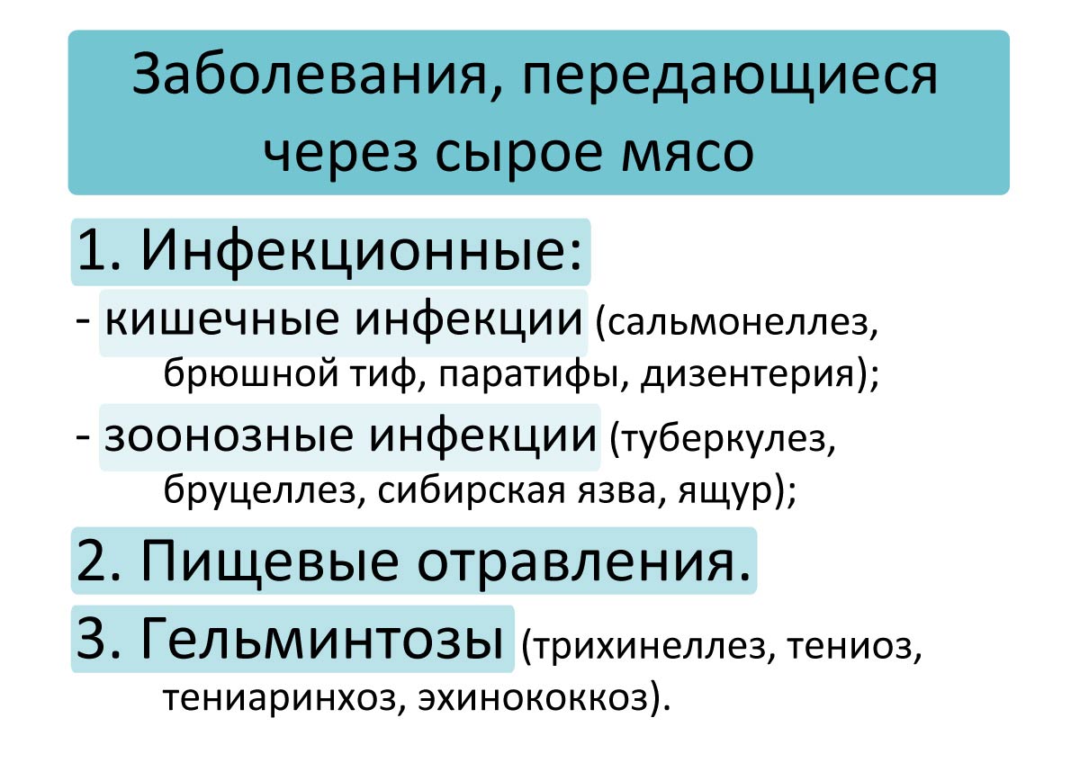 В сыром мясе могут находиться возбудители опасного для беременности заболевания – токсоплазмоза. Поэтому крайне важно, чтобы всё мясо, поступающее в организм будущей мамы, было хорошо приготовленным. Помимо токсоплазмы, сырые продукты животного происхождения могут содержать сальмонеллу – опасную для человеческого организма бактерию, вызывающую тяжёлые отравления.
