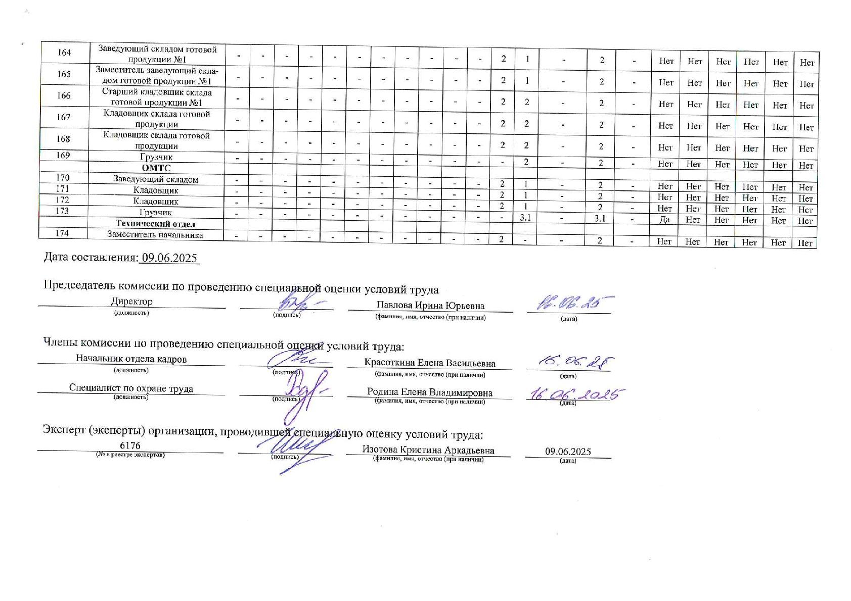 Сводная ведомость результатов проведения специальной оценки условий труда 16.06.2025