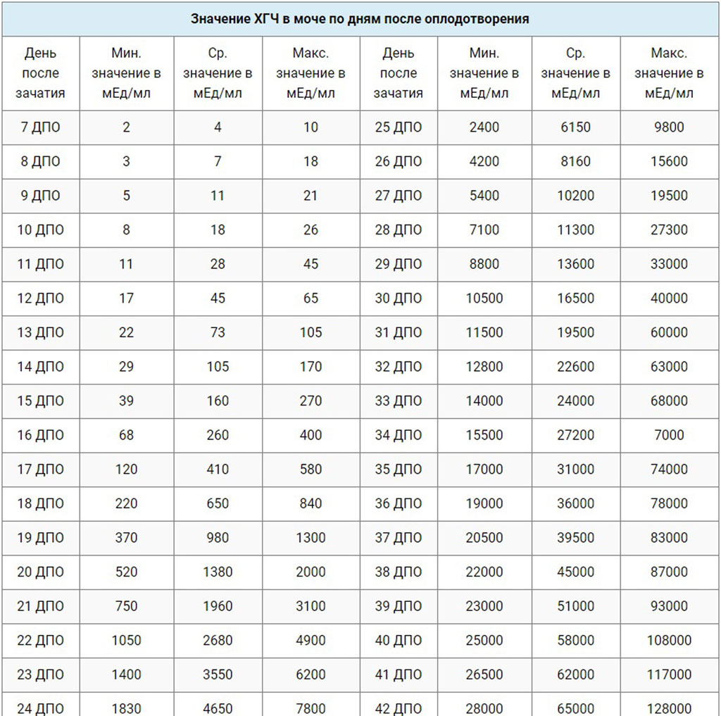Таблица значений уровня ХГЧ на разных сроках беременности