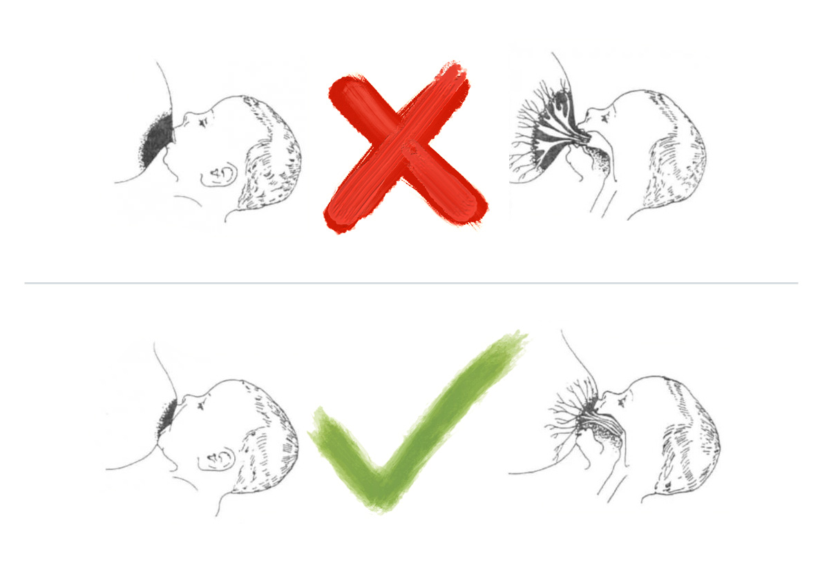 Грудь после родов тоже ведёт себя непривычно. Она набухает, особенно после прихода молока (как правило это происходит на третий день после рождения малыша). Соски могут быть очень чувствительными. Крайне важно, если вы кормите грудью, добиться правильного захвата соска новорожденным. Кажется, что сосок слишком велик для маленького ротика, но несмотря на это, нужно стараться, чтобы вся нижняя часть ареолы и большая часть верхней была во рту малыша во время сосания. Первое время не нужно кормить дольше, чем 15 минут подряд, чтобы дать соскам привыкнуть к новой нагрузке и не позволить малышу травмировать нежную кожу.