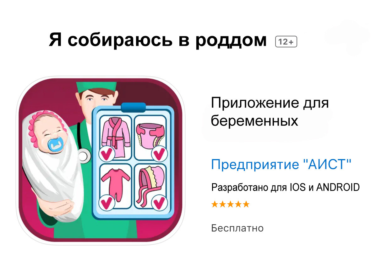 Приложение «Я собираюсь в роддом» вы можете совершенно бесплатно скачать: