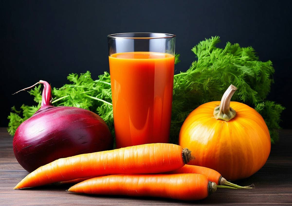 Морковный сок содержит бета-каротин, который придает коже здоровый цвет и улучшает ее состояние.
