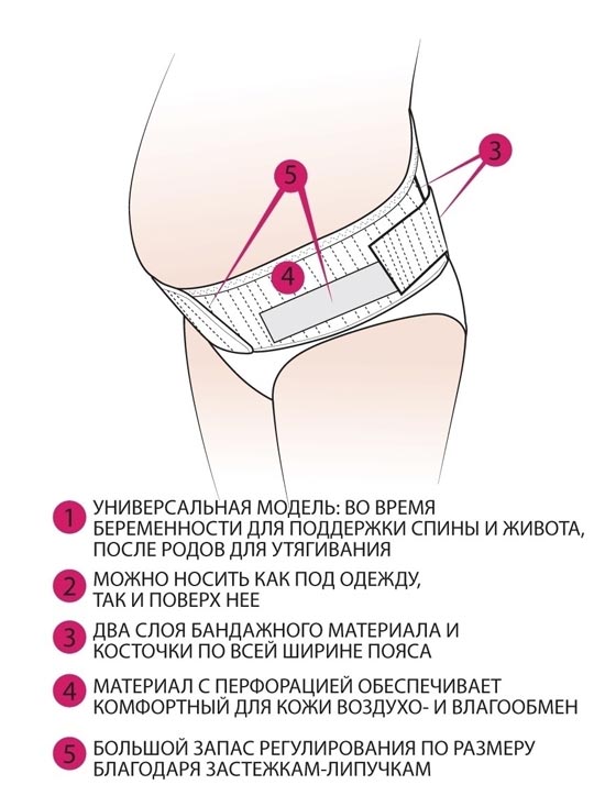 Универсальный бандаж удобен тем, что его можно использовать как до родов, так и после.